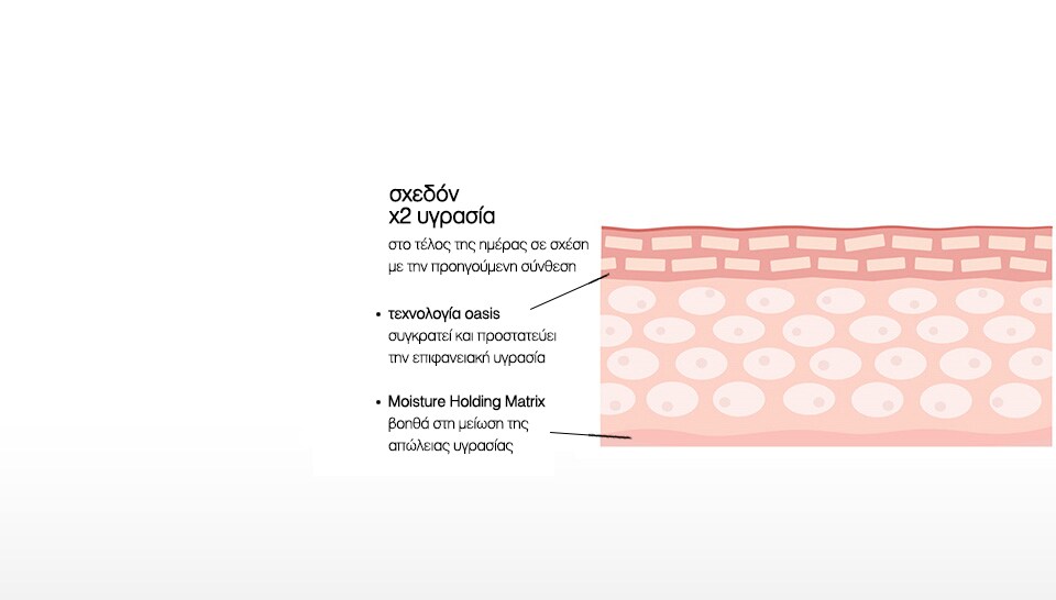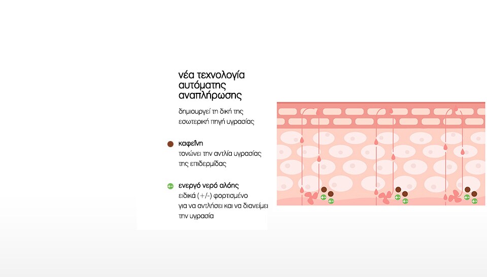 Νέα τεχνολογία αυτόματης αναπλήρωσης με ενεργό νερό αλόης βοηθά την επιδερμίδα να δημιουργεί φυσικά αποθέματα νερού, για να προσφέρει μία διαρκή ενυδάτωση. Στη συνέχεια, σφραγίζει όλη την υγρασία, αφήνοντας την επιδερμίδα γεμάτη, δροσερή και ντυμένη με υγιή λάμψη. Γεμάτη Υαλουρονικό οξύ- το φυσικό ιδανικό μαγνητη υγρασίας, (όπως αποδεικνύουν και οι μελέτες), δουλευει ασταμάτητα για 72 ώρες, ακόμη και αφού πλύνετε το πρόσωπο σας.